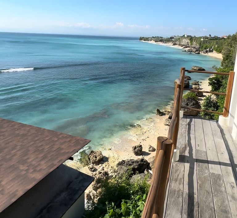 Das Bingin Glasshouse ist ein richtig cooler Spot direkt am Meer. Die ganze Front ist aus Glas, man hat also den perfekten Blick aufs Wasser den ganzen Tag. Die Wohnung ist offen gestaltet und super gemütlich, perfekt zum Abhängen nach Strand oder Surf-Action. Ich hab die Zeit dort echt gefeiert, weil man sich wie mitten in der Natur fühlt, Meerblick hat und trotzdem sehr gut wohnen kann.