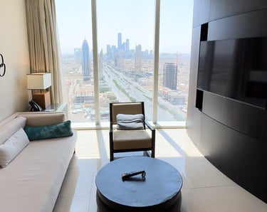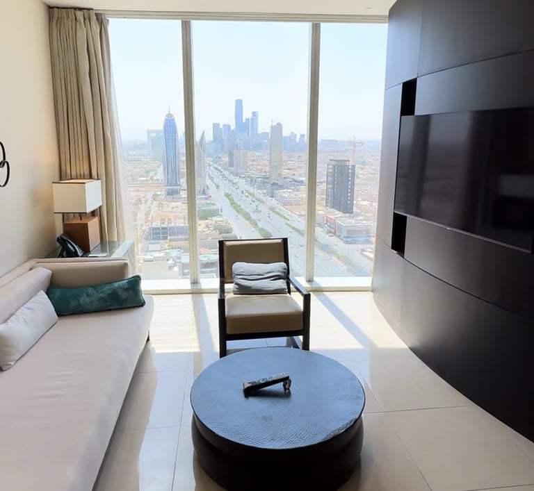 Ich war 2023 in der Suite vom JW Marriott in Riad – und das war richtig beeindruckend. Die Suite fühlte sich an wie ein mega Apartment: mehrere Schlafzimmer, ein großes Wohnzimmer, stylisch bis ins Detail. Alles war hochwertig eingerichtet, mit weichen Sofas, fettem Fernseher und einem Ausblick, der einfach reingehauen hat. Besonders cool war der Kontrast – drinnen pure Luxus-Oase, draußen die trockene Weite der Wüste. Man kommt rein und denkt sich nur: Hier lässt es sich leben.