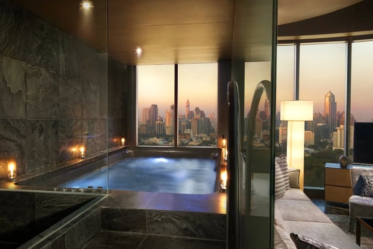 Das SO/ Bangkok ist ein richtig stylisches Hotel mitten in der City, direkt am Lumpini Park. Die Zimmer sehen aus wie aus einem Instagram-Feed - modern, bunt und alle ein bisschen anders. Oben gibt’s einen Rooftop-Pool mit fetter Aussicht über Bangkok, plus Bar für Drinks bei Sonnenuntergang. Perfekt für alle, die City-Vibes, gutes Essen und coole Fotos und eine unvergessliche Zeit haben wollen.
